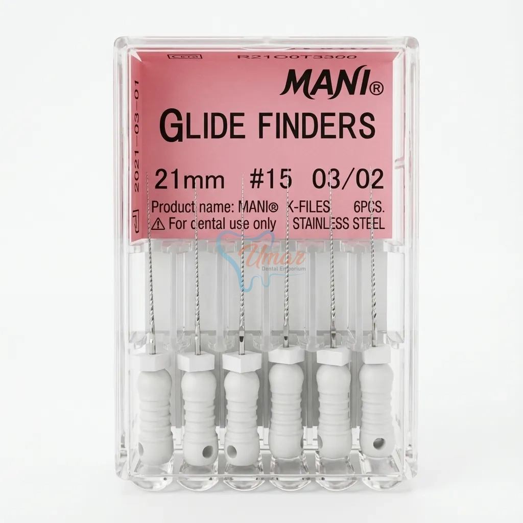 Mani Glide Finders are specialized endodontic hand files designed to establish a smooth “glide path” in narrow, calcified, or difficult root canals.